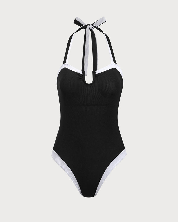 Siyah Kontrastlı U Şeklinde Tek Parça Mayo