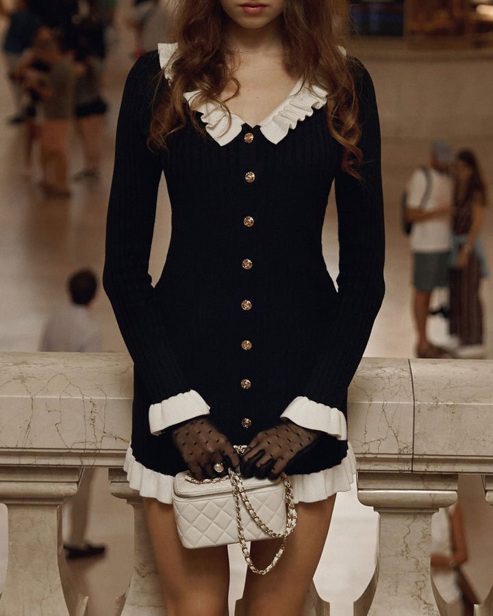 Siyah Kontrastlı Şair Kollu Kazak Elbise
