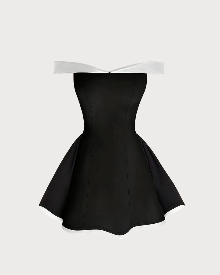 Siyah Kontrast Straplez A-Line Mini Elbise