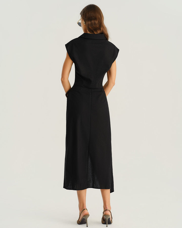 Siyah Doğal Bel Yırtmaçlı Midi Etek