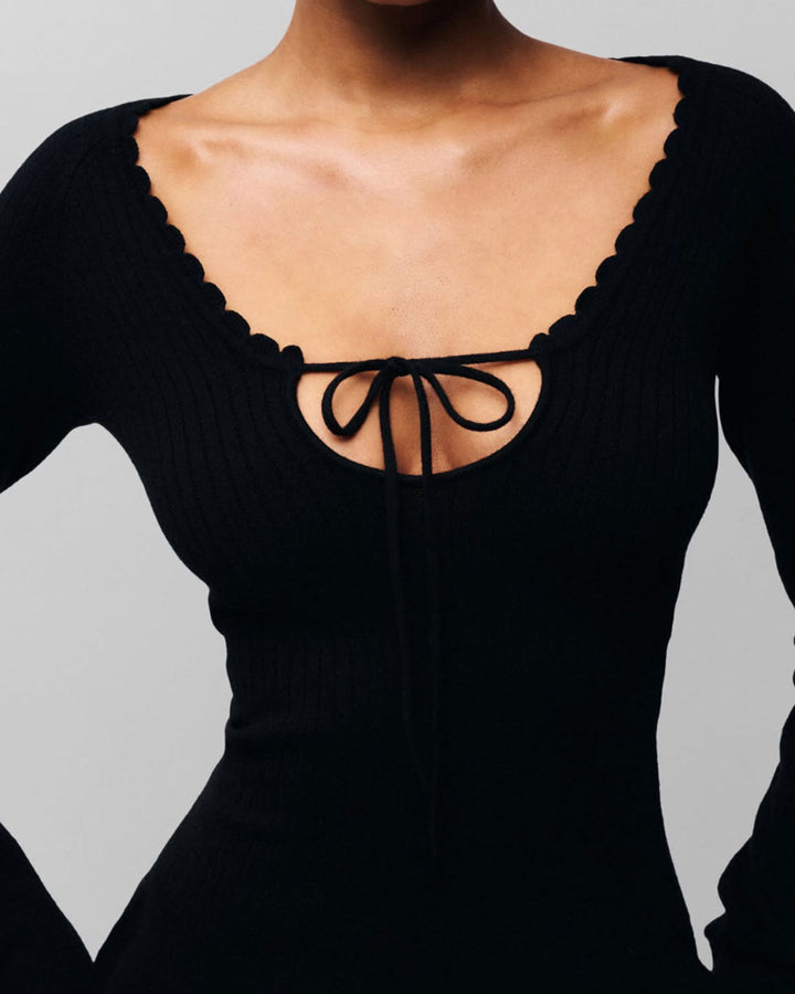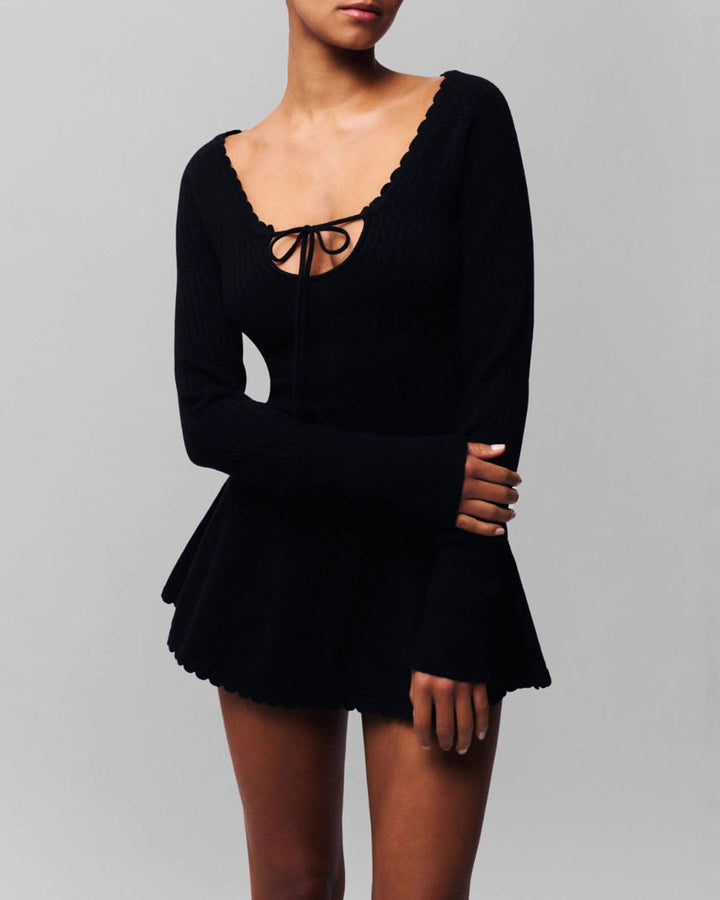 Siyah Yuvarlak Yakalı A-Line Kazak Elbise