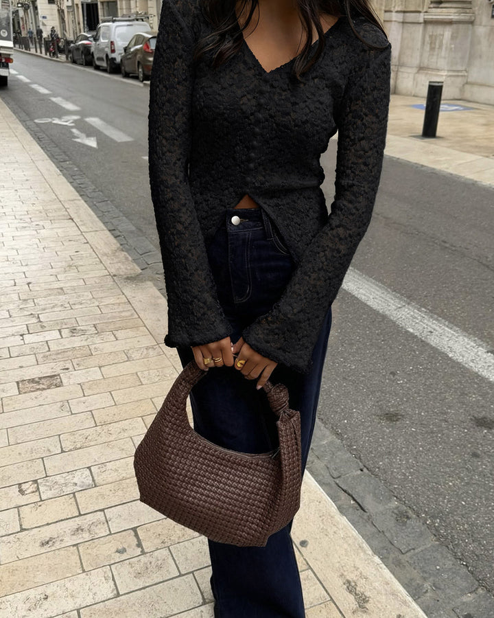 Siyah Şeffaf V Yaka Tişört
