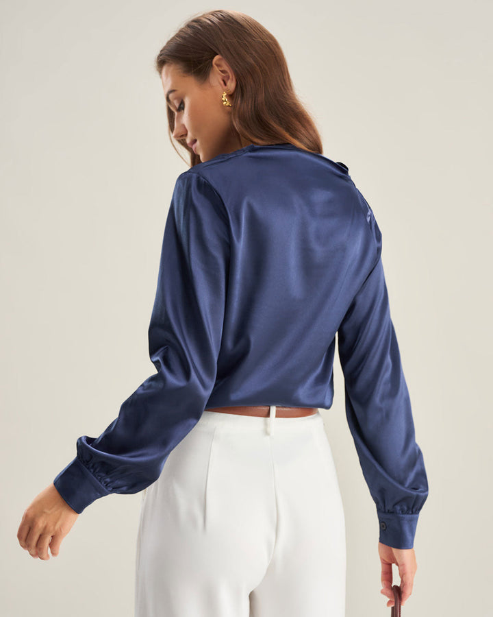 Mavi Saten V Yaka Gömlek