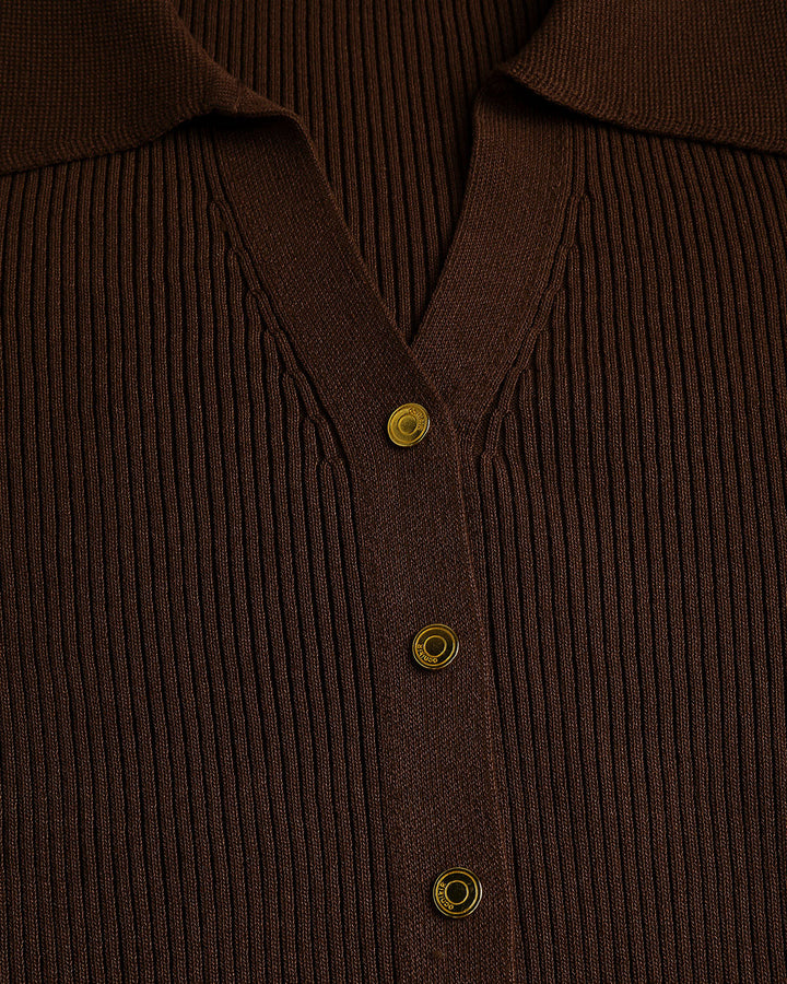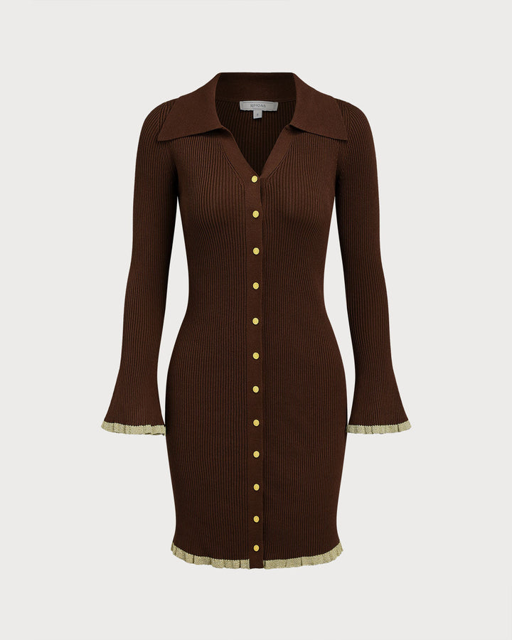 Kahverengi Bodycon Düğmeli Kazak Elbise