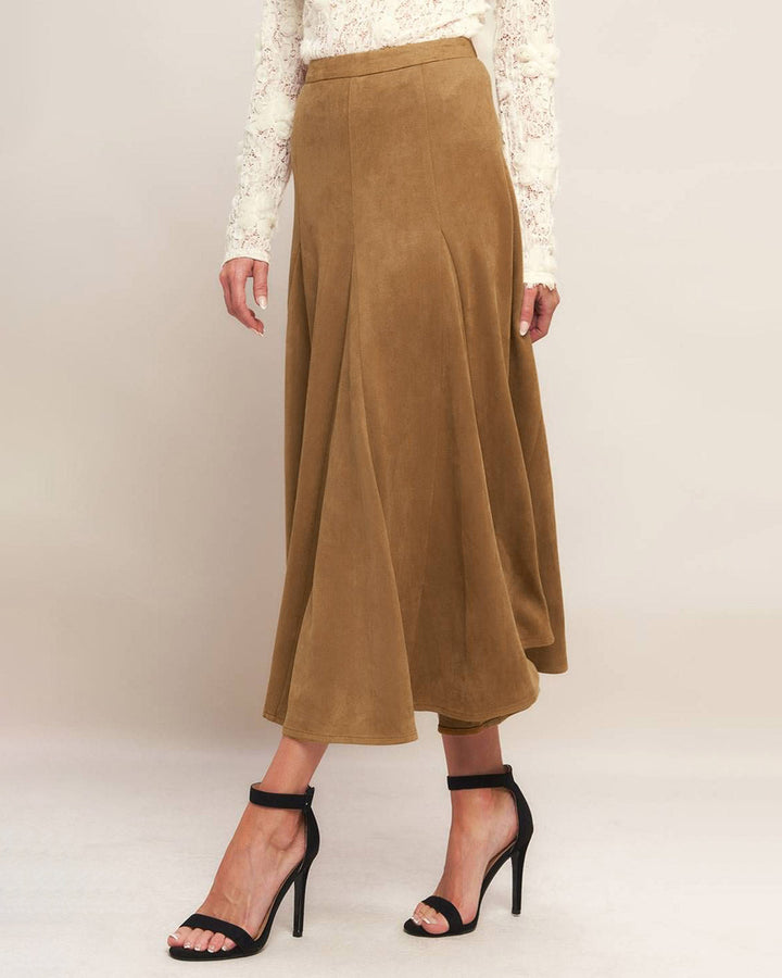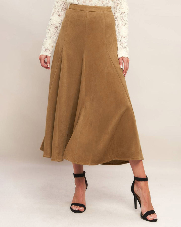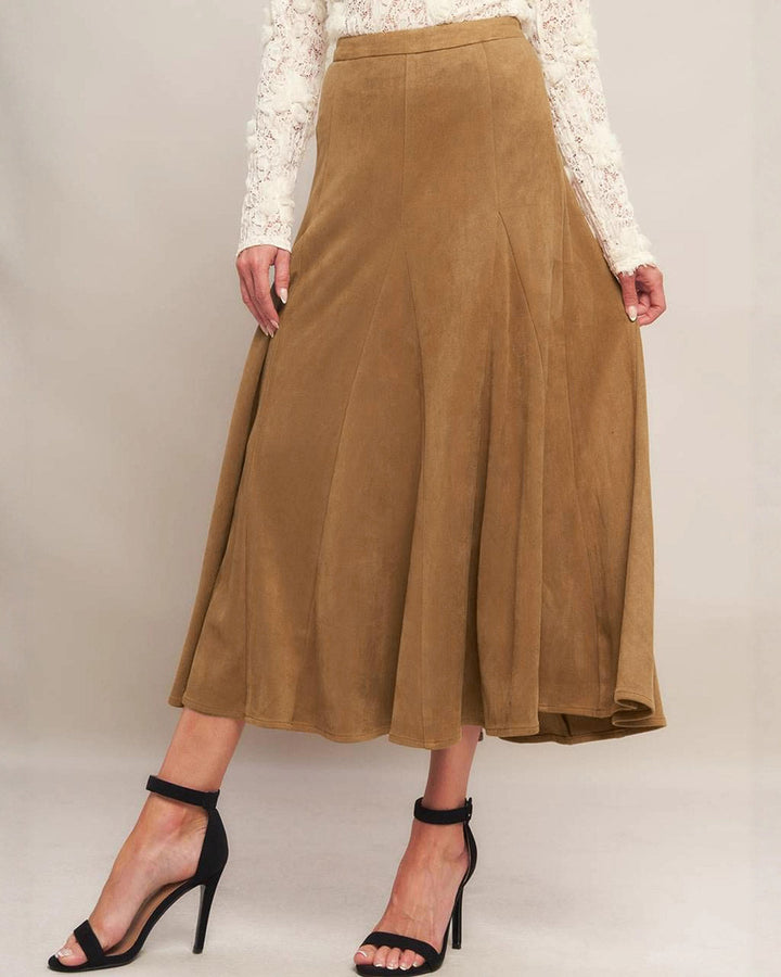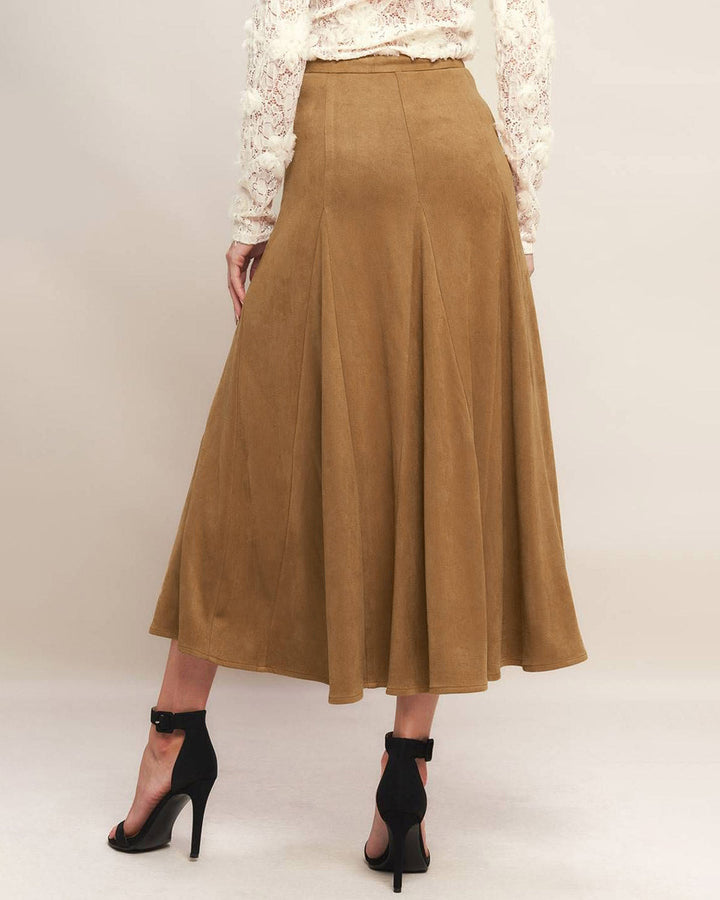 Kahverengi Doğal Bel A-Line Midi Etek