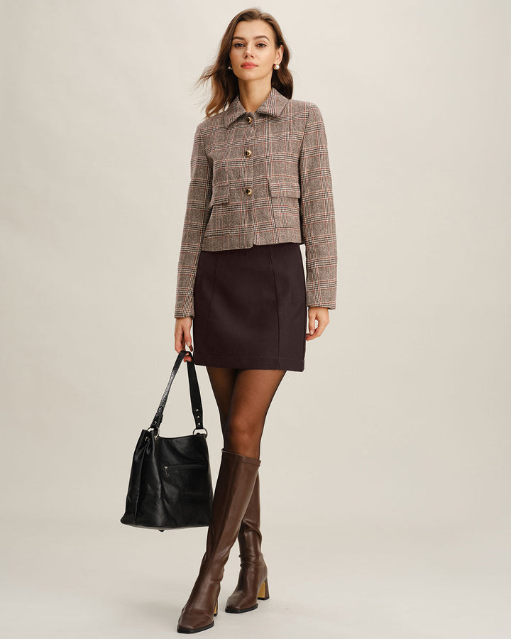 Kahve Rengi Doğal Bel A-Line Mini Etek