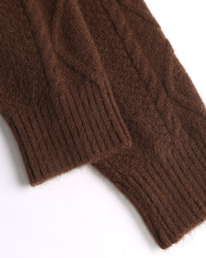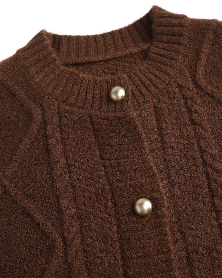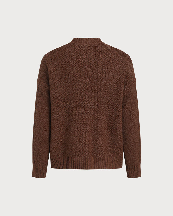 Kahve Rengi Dokulu Örgü Hırka