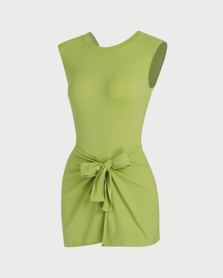 Yeşil Yuvarlak Yakalı Yüksek Esnek Yoga Elbisesi