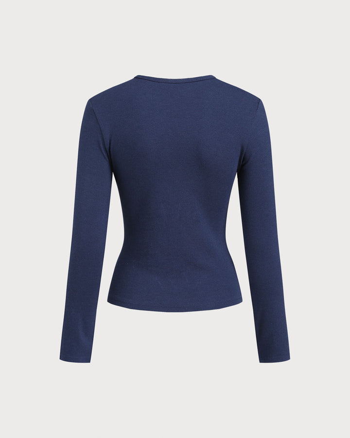 Lacivert Kesimli Dar Örgü Kazak