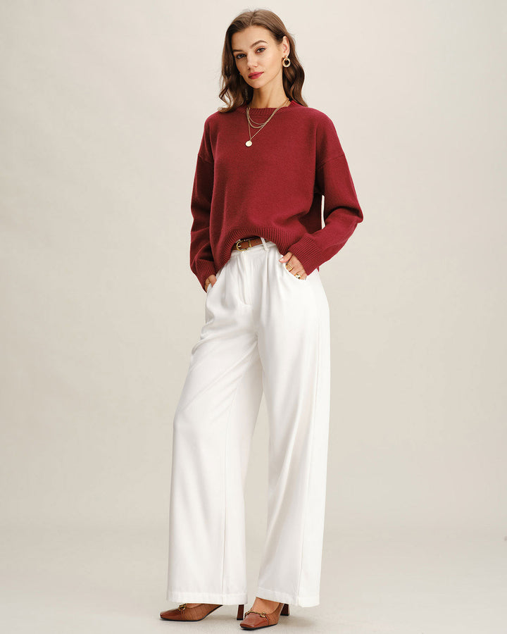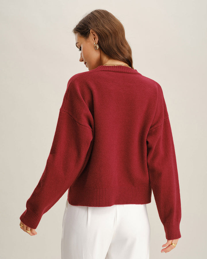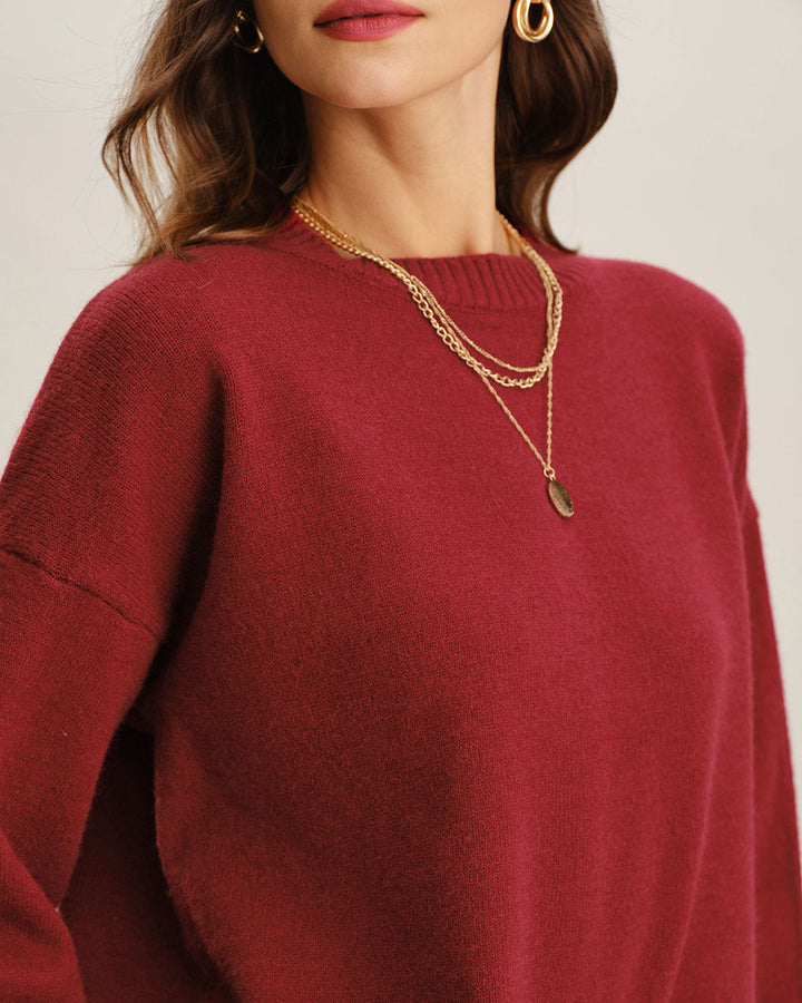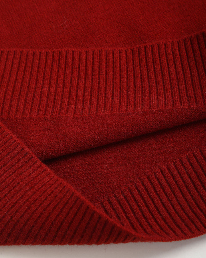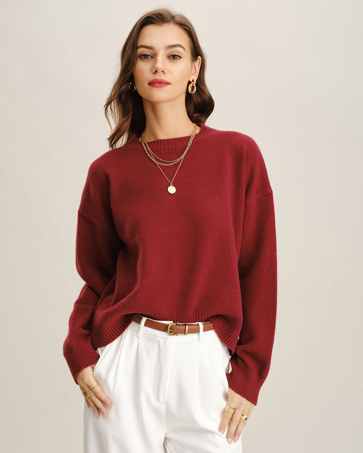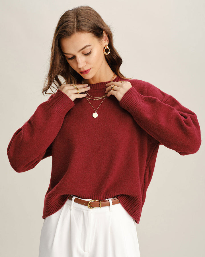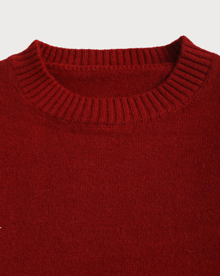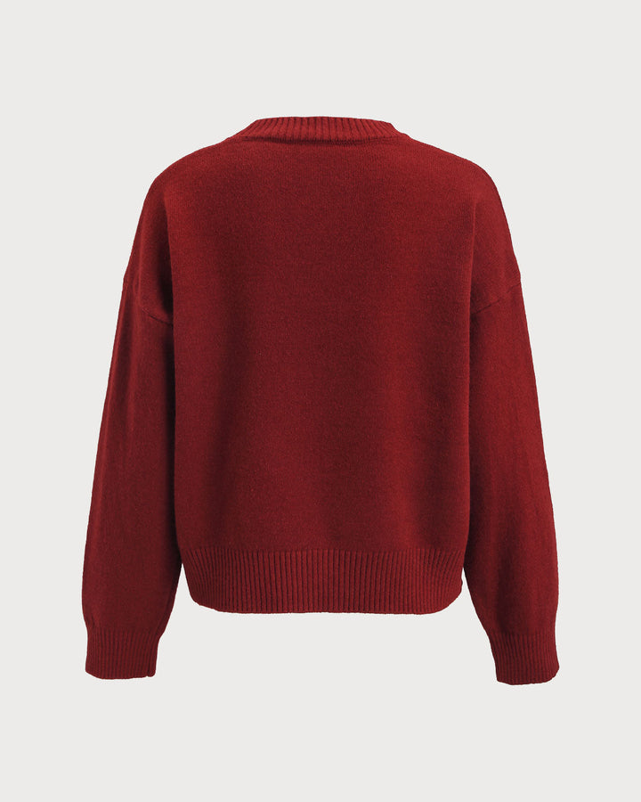 Kırmızı Yuvarlak Yakalı Bol Kazak