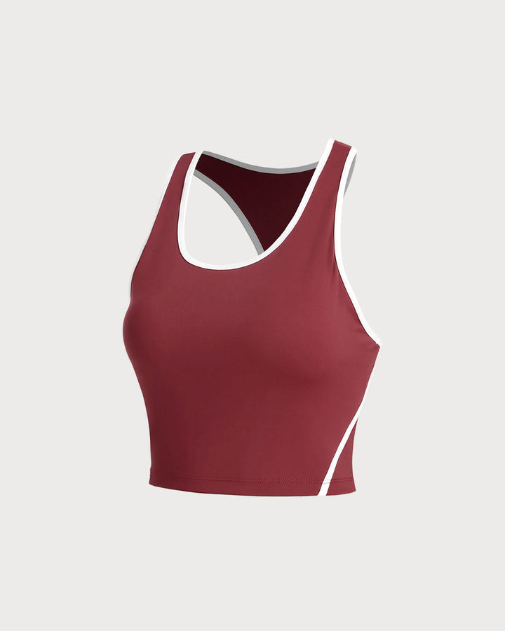 Kırmızı Scoop Neck Yoga Tank Top - Hafif Destek