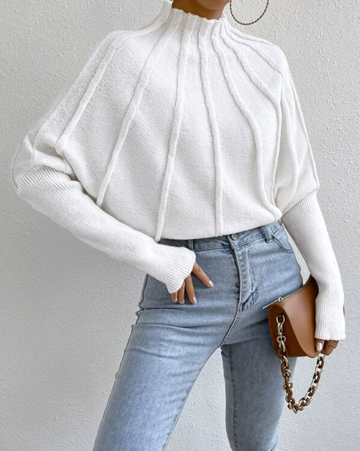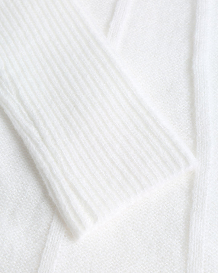 Beyaz Yuvarlak Yaka Oversized Kazak