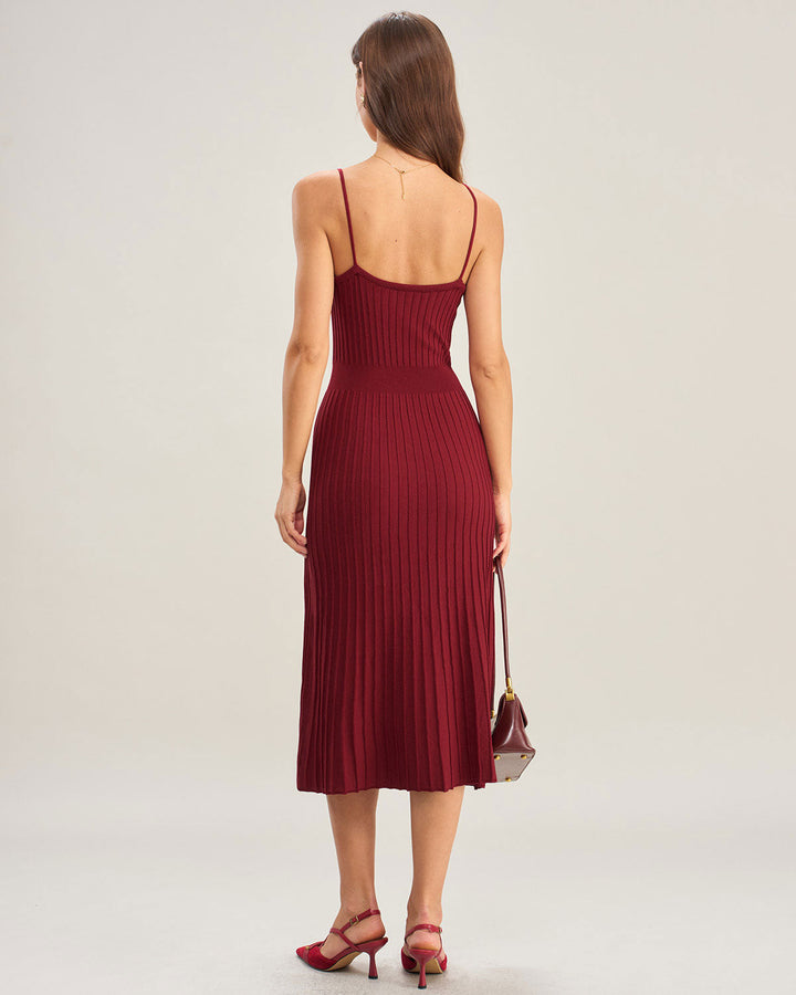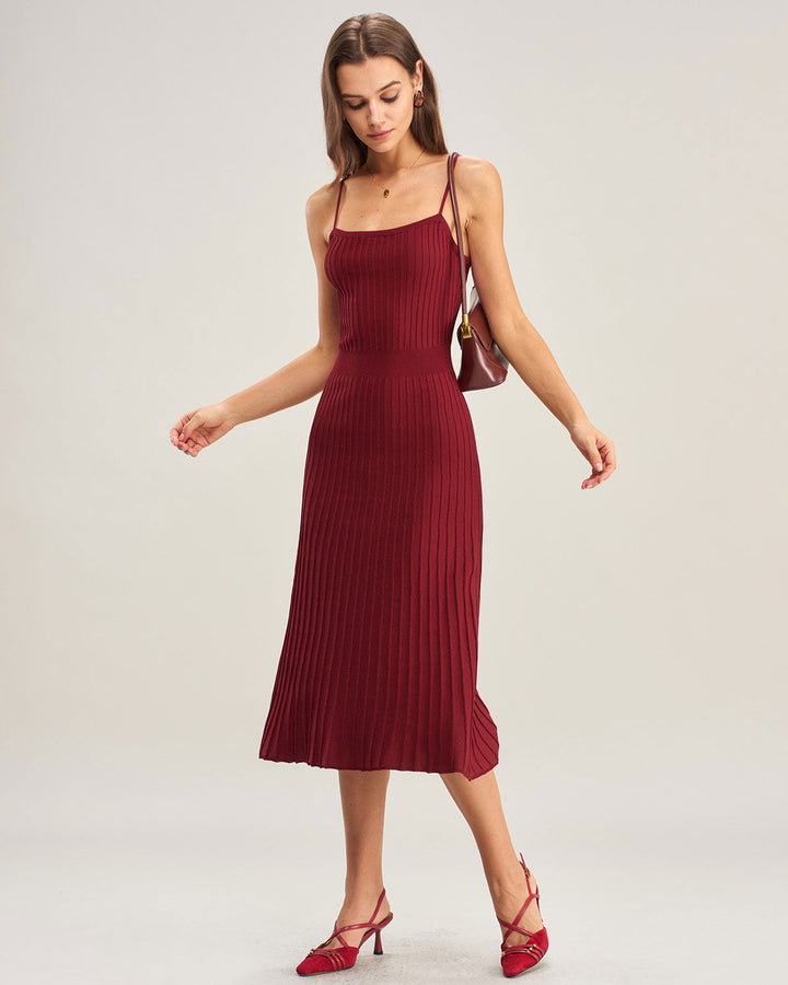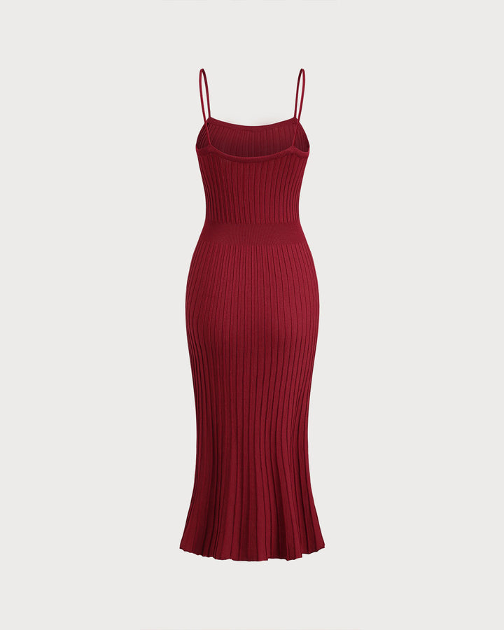 Şarap Kırmızısı A-Line Slip Kazak Elbise