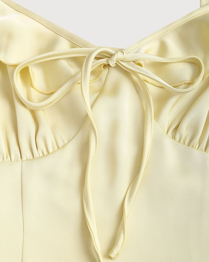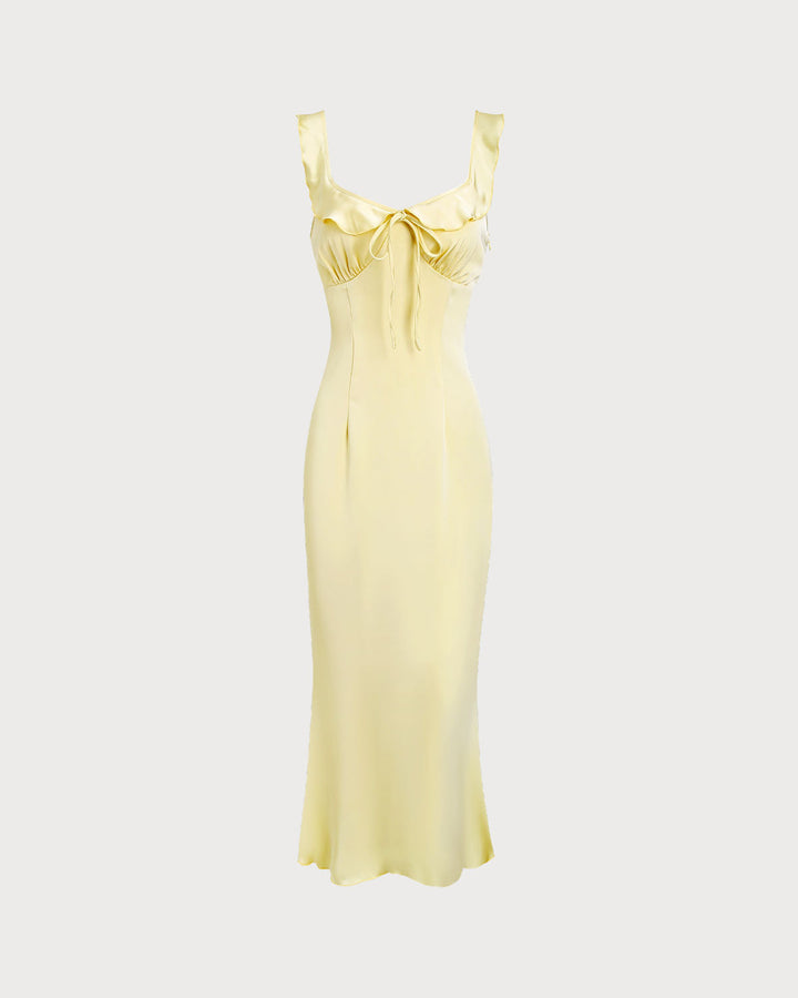 Sarı V Yaka Fırfırlı Denizkızı Midi Elbise